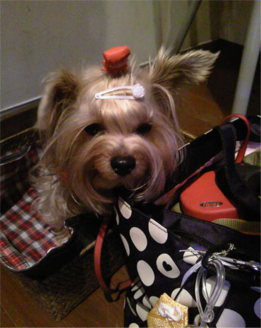 リュックに入ったヨーキーちゃんが!